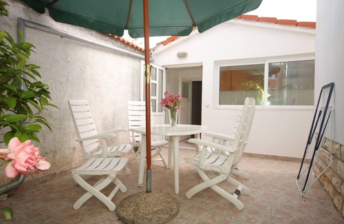 Apartment can accommodate 6 guests. Beds are situated in 2 sleeping rooms, but also in the living room, within 59m2. Guests can use a private terrace to enjoy the warm summer evenings. The apartment offers the sea view. Food can be prepared using barbecue which is shared with other guests too.