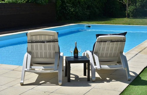 Two bedroom gite with large heated pool and games room is located in Chey. Two bedroom gite with large heated pool and games room provides accommodation, featuring Security/Safety, Bedding/Linens, Laundry, among other amenities. This House features Security/Safety, Bedding/Linens, Laundry, to make your stay a comfortable one.