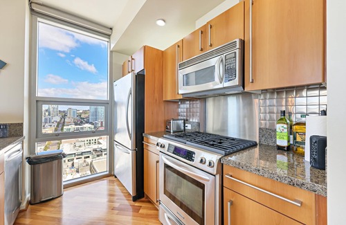 Two bedroom Penthouse with beautiful views of Downtown and San Diego Bay is located in East Village. Two bedroom Penthouse with beautiful views of Downtown and San Diego Bay provides accommodation, featuring Laundry, Balcony/Terrace, Security/Safety, among other amenities. This Condo features Laundry, Balcony/Terrace, Security/Safety, to make your stay a comfortable one.