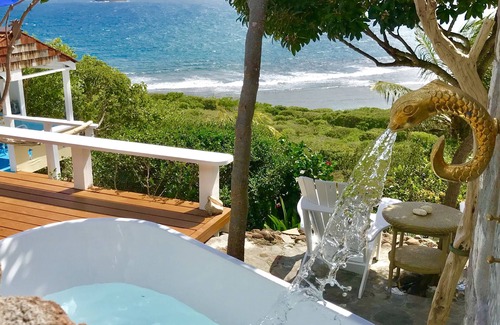 This cozy cottage, situated in lush tropical foliage with breathtaking Ocean views, is a few minutes walk to Turtle Beach which has one of the best coral reefs for snorkeling on the island.