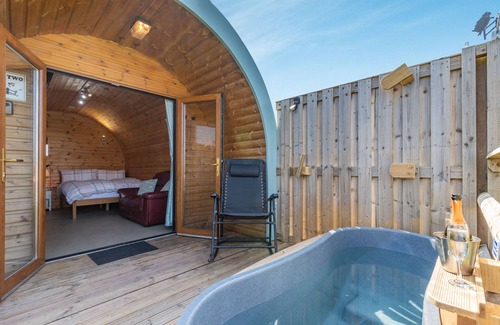 Amenities: Electric heating. 2 x ring hob, combination microwave/oven, hairdryer. Smart TV and DVD, WiFi selection of books and DVD's. Fuel, power and starter pack for wood-fired hot tub inc. in rent - further wood can be purchased locally. Bed linen and towels inc. in rent. Private decking with private hot tub, shared garden area, BBQ, windbreakers. Off-road parking. Communal shed with bike storage, iron and ironing board. Sorry, no pets and no smoking at property or on the grounds. Shop 0.9 miles. Shop/post office/fuel station 0.9 miles. Pub 0.6 miles. Note: There are 3 steps onto the decking around the property. Please note: The WIFI connection may drop out due to adverse weather. No infants or children allowed, two adults only. Please note this property can only accept bookings that are 2 nights duration or longer.