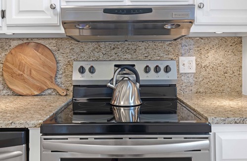 Inside, you’ll find a perfect mix of modern updates and classic charm. The living area is warm and inviting with comfy furniture and plenty of seating for relaxing. The fully equipped kitchen has everything you need to cook meals, with modern appliances and cookware.