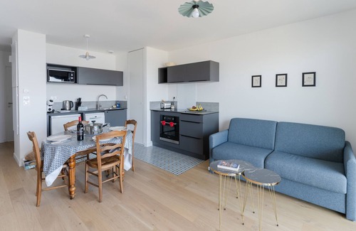 Immerse yourself in the serene atmosphere of TY MOUTIK, a charming one-bedroom apartment located in a new residence dating from 2024. As soon as you arrive, let yourself be seduced by the bright living room with an open kitchen, offering a friendly and modern living space. From the living room, access the balcony where you can enjoy moments of relaxation thanks to the breathtaking view of the sea and the Four Lighthouse.