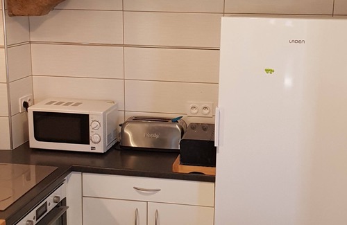 On the ground floor, full equiped kitchen (washing machine, hoven, large fridge, coffee machines, ...) opened on the dinning room with television and cheminey. Also, large laundry room (washing machine, dryer, iron and ironing board, ...) with large cupboards, next to a modern bathroom with shower, and separated toilets.