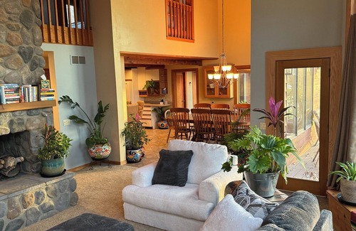 Inside, unwind by the fireplace, connect to Wi-Fi, or enjoy a game night with over 10 board games. A Bluetooth speaker is available to keep the tunes going.