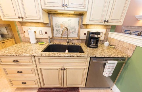 Private Guest Suite Features Everything You Need: King Size four poster bed, Gas Fireplace, Fully Equipped Gourmet Kitchen (Coffee, Tea, Stove, Oven, Microwave, Blender, Spices, Toaster Oven, Full Size Fridge, Dishwasher, etc.) Breakfast Nook for 2, Private Bathroom with Tiled Tub with plenty of towels, shampoo, conditioner, shower gel, etc. We do have Laundry available in the main house if needed, (but it is not located in the guest house).