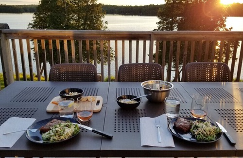 Enjoy 10 acres of privacy and over 500ft of Western exposure at Lazy Loon Lakehouse on Wolfe Lake. Take in the sunset from the 50 ft. deck, relax in a hanging hammock chair by the water or enjoy solitude in the cedar forest. Enjoy cooking what you catch? You'll appreciate the fully stocked pantry, fresh garden herbs and BBQ. Love spending time on the water? You'll enjoy the row boat, 4 new kayaks and swim raft. And if you cherish downtime, you'll be happy you came - this place was designed for relaxing.