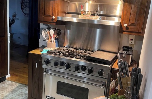 As you settle into this 3-bedroom, 1-bathroom rental, you'll find a sofa bed and air conditioning. Connect to the WiFi, or get cozy in front of the Smart TV; there's also video games. Bathroom amenities include a hair dryer, towels, and toilet paper. No need to pay for a restaurant every night, when you've got an oven, a dishwasher, and a microwave on hand. Other amenities include bed sheets, an ironing board, and heating.