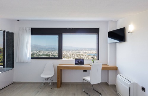 Nuzzled in a privileged hilltop location, Regal Residence is one of the few properties in Chania that enjoy unobstructed panoramic views, overlooking the city and bay of Chania. Feel the calmness of the lush green forest around you, gazing at the sunset and have the vacation you always dreamt about, while being very close to Chania town and all daily amenities at the same time.