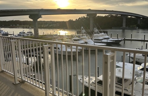 ELIMINATE THE hassle of elevators with this beautiful condo located on the same floor as your gated and assigned parking. Beautifully furnished, huge condo with a large balcony with a gas grill, overlooking the intercostal waterway, marina with spectacular sunsets. Personally cleaned and maintained! Complete kitchen with granite countertops, and wine cooler.