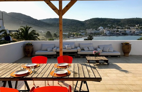 This apartment overlooks the bay of Aghia Marina, it offers an incredible view. This accommodation is perfect for a loving couple or for a small family.