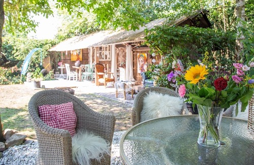 This unique atelier is tastefully decorated and blessed with a quiet, natural setting. 'The Atelier' is ideal for a relaxing getaway alone or with a partner. The best bakery in the Netherlands is across the street. You can retreat here, easels are available, also writing a book is ideal here. The house is sheltered and at the same time it is a house with all the comforts and there is plenty to do nearby. Since the beginning of 2023, there is also a nice outdoor hot tub where you can get nice and warm. You imagine yourself in the middle of nature here, and while enjoying the squirrels and singing birds you plan your next walking route through beautiful Drenthe, because it is located on the Pieterpad. Through one of the beautiful nature reserves? Or through nice nearby towns such as Emmen, Meppel or the world-famous Giethoorn? With its location in the most central street of the quiet village of Sleen, you still have everything within easy reach from here. Relax in the cozy living room with smart TV, sitting area and fireplace and indulge in the reading wall with various books provided by the owner. Through a beautiful spiral staircase in the living room you reach the spacious bedroom with comfortable box spring and sloping walls for a cozy atmosphere. You can show off your cooking skills in the kitchen and the luxurious bathroom is equipped with an advanced jet stream with lighting and radio, sink and toilet. In the sunny garden or under the veranda you can end the day relaxing. Or recently sitting in the brand new hot tub. The house is located on the Pieterpad. It is at the beginning and at the end point of a route, so spending the night here is ideal. Emmen is 7 km away.
