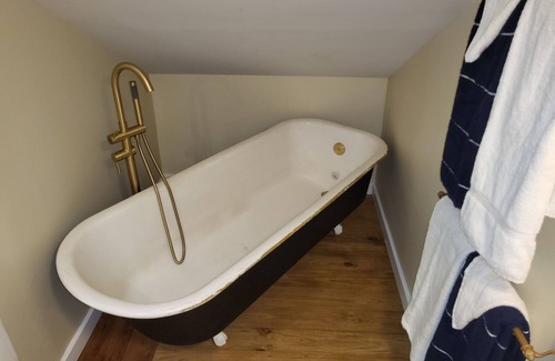 Welcome to the Tower Suite! On the 3rd floor of the Manor House, the Tower Suite is situated with one queen size bed and a comfortable convertible futon and provides awesome views from the observation deck of the tower! With modern heating and air conditioning, a 72” vintage soaker claw-foot tub, and a kitchenette with appliances the Suite is stylistic and comfortable. The authentic 3rd floor of the Manor House has headroom limitations so this Suite is not for the super tall!