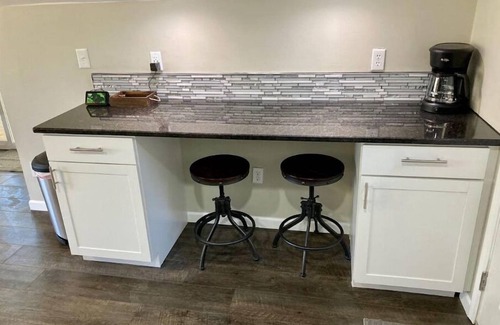 Unique efficiency suite completely remodeled as of November, 2020. This house is tucked away in a great neighborhood, making you feel like you are out in the woods on a private creekside retreat. You have 2 acres of creekside property all to yourself. Upgrades in the home include new stainless steel appliances, beautiful granite counters, gorgeous custom tilework in the bathroom, a fantastic covered deck overlooking the rear of the property and it is comfortably furnished and fully stocked.