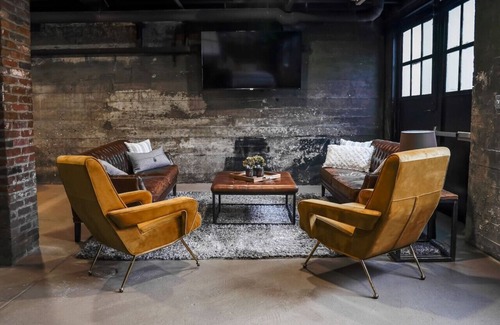 The Underground is a stylish and completely remodeled studio with a full bath that boasts an industrial vibe and is conveniently located on the lower-level of the Stables Workspace. With zero steps and attractive lighting, this rental is easily accessible and welcoming.