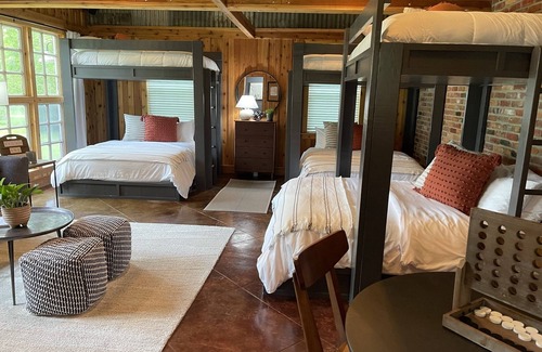 The Magnolia is 1 of 3 houses on this beautiful wooded 2 acre property. Magnolia is a unique spacious home built for family and friends to enjoy! Magnolia is our horse stable converted to a Bunk House that sleeps up to 11 people. This space provides a fun and cozy open concept for family and friends to gather. This space is the perfect spot for family gatherings, wedding parties or bachelor/bachelorette nights!