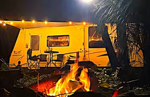 🌴 Hidden in the rainforest and just a 5-minute stroll to Bingil Bay Beach, this off-grid caravan is where adventure begins. Spend your days exploring wild coastline, swimming under palm trees, or hiking rainforest trails — then return to your private retreat under a canopy of stars. Steps from the iconic Bingil Bay Café and only 10 minutes to Mission Beach, it’s the perfect basecamp for explorers chasing nature and freedom.
