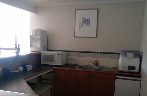 The guest room has 1 queen bed, 1 double bed, 1 double sofa bed and 1 single sofa bed with a private bathroom attached to the main room. There is a split system air-conditioner for heating and cooling in the room. The small kitchenette contains a bar fridge, microwave, small dishwasher, toaster and kettle. A portacot and kids high chair is available on request. There is a BBQ on the balcony for if guests would like to cook their own lunch or dinner. The large room also has a dining table and a lounge area with a TV.