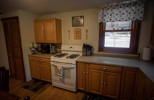 The unique house was built by its original owners, and started with the log cabin yurt that is attached to the main living quarters. The main house sits a quarter of a mile off the road, deep within a pine forest and overlooks Miller Creek. With five bedrooms and sleeping arrangements for 10, this quiet get away is perfect for the whole family. The house includes everything you could need and more. Including a library, game room, and a home movie theater complete with a big screen projector, movie theater popcorn machine, drinks, and your own personal candy station. Upstairs is a king size bed and two twin beds, a queen size bed and bunk bed (full over a full size bed) on the lowest level, and within the original yurt cabin are two full size futons. This sleeping arrangement is on the main living floor and is accessible by a 6 inch stair. We also have a fold out couch in movie room on the lowest level that is also a full size. The main floor also includes the kitchen with small dining table, family room, dining room with seating for 10, three season porch with a bench swing, cabin yurt, and full bathroom. While the house is amazing, we believe that the beauty of this stay comes from the property. Just within the 70 acres is a beautiful pond with a dock and sitting area, a covered tree house perfect for relaxing in the treetops, and a gazebo (set a short hike into the woods) that overlooks a babbling brooke. Enjoy cross country skiing, snow shoeing, and sledding all at your doorstep. While this stay will make you feel like you are in complete solitude, it is conveniently located 25 minutes from downtown Ithaca, one hour to Binghamton, and only 45 minutes from Greek Peak Ski Resort. If you aren’t looking to travel that far, the town of Spencer is only a 7 minute drive from the house and can provide you with anything you may need. There is a caretaker on site, in a separate apartment on the property, that can provide you with any help you may need, but will stay out of the way unless needed. We also provide an optional breakfast of fresh baked goods, coffee, and orange juice left at your doorstep each morning.