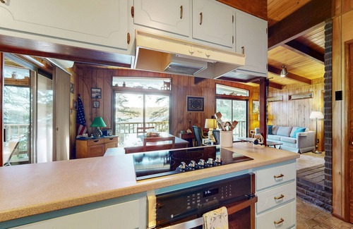 Enjoy fabulous lake views and the warm ambience of a wood-burning fireplace in the welcoming living area. Choose a board game for old-fashioned fun. Downstairs, the lounge offers additional relaxing space, with ample seating and a 32” TV.