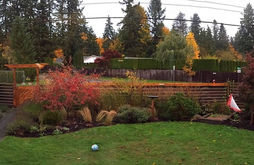 Outside the glass side door you will find a wrap-around deck that gives onto your own private garden area and a view of the forest. The cottage sits next to our main house and the garden is fully-fenced (we have a big gentle dog) and includes our veggie patch and chicken coop. We look forward to providing you with daily fresh eggs!