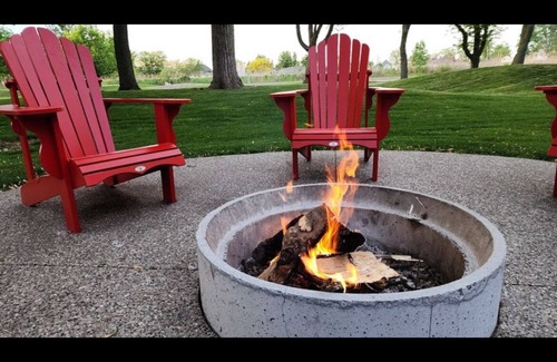 Nestled on one of the most picturesque lots, this beautiful property overlooks the stunning 17th green. Upper patio with comfortable lounge seating, perfect for enjoying sunsets. Lower patio featuring a dining table and chairs. Relax by the concrete fire pit surrounded by 6 cozy Muskoka chairs—ideal for evenings under the stars. Boat launch as well as 4 kayaks available to travel down the canal. Great fishing with quick access to Lake St.Clair. Heated salt water pool on grounds!!