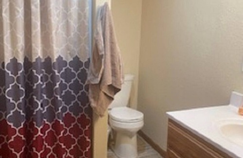 Also includes a queen size inflatable mattress, dining area and bar seating in kitchen. It would be great for a family to come to town and visit or just an individual looking for a nice place to stay.