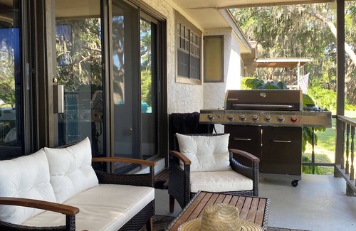 Take it easy at this unique and tranquil getaway. On the lake with beautiful views from the sunroom to the large master with your own patio. Enjoy grilling out or cocktails with a gorgeous lake view. Wake up to coffee on the porch directly off your master suite. Partake in kayaking, paddle boating or fishing in a spring fed lake while sunbathing on the "White Sands" beached area. Paddle boat and kayaks are available for guests use.