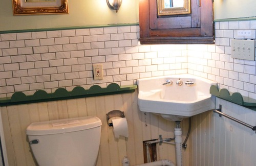 This tiny house is a conversion of an antique hen house on an historic farm. The interior is constructed mostly of reclaimed materials--like yellow pine flooring, corrugated tin ceiling, rough-cut oak book shelves, etc. The walls are decorated with an eclectic collection of art (everything from Japanese woodcut to abstract oils). The cottage features an impressive small library. It's warm and cozy, a superbly relaxing place to clear your head and get some much deserved rest.
