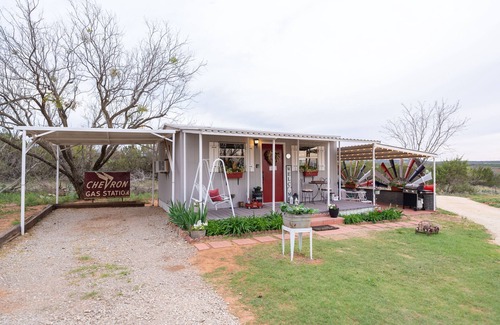 A cozy 280 sq. ft. tiny house in the country is a great place to take it easy, unplug (No WiFi) and enjoy the West Texas sunsets, star gazing and wildlife while relaxing in the hot tub. Less than 10 min. from some of the best BBQ in West Texas, World's Largest Rattlesnake Roundup (March) and minutes from area lakes for great fishing. The home has an open concept kitchen, living room and queen size bed. The bathroom features a large metal stock tank bathtub with shower. Great for soaking your troubles away! A covered carport.