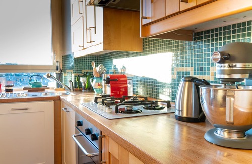 I enjoy cooking so the kitchen is fully stocked with equipment (and pantry items which you are very welcome to use if needed). Blender, KitchenAid food processor, Dualit toaster, Le Creuset, dishwasher, microwave, American style coffee machine, espresso moka, etc