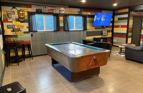 Located in Aniwa, Unique Renovated Building- Sleeps 4. One-of-a kind studio space with easy access off main highway. Ample parking for trailers. Open concept living area includes a large tv with surround sound, wireless wifi, and a fully equipped kitchen. Rest your head on the new queen murphy bed with high quality mattress or the thick fluffy queen futon. Enjoy a game of pool or relax in the wooded outdoor setting. Perfect for a relaxing getaway. Offers the ideal blend of cozy vibes and fun amenities. Close to hiking, biking, utv/atv, and snowmobile trails
