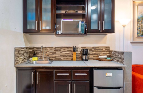 Escape to the tranquility of this Loft Villa, a peaceful retreat in Manuel Antonio inspired by the serene hues of the Pacific Coast. Thoughtfully designed for comfort and independent living, this cozy space features a queen bed, private bath with a hot shower, and a compact kitchen for preparing simple meals. Relax on your private terrace with a cup of coffee while spotting local wildlife. Just a few kilometers from the beaches and park, yet tucked away from the crowds.