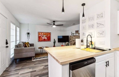 LOCATION, LOCATION, LOCATION!! Experience the vibrant essence of Austin at this cozy 2 bedroom SoCo retreat, a beautifully designed modern and eclectic apartment infused with the spirit of local artistry. Ideally located just minutes away from South Congress Avenue (SoCo), downtown Austin, the airport, Town Lake, and Zilker Park, our 2 bedroom apartment is a haven for couples and groups up to six, seeking a unique and memorable stay.