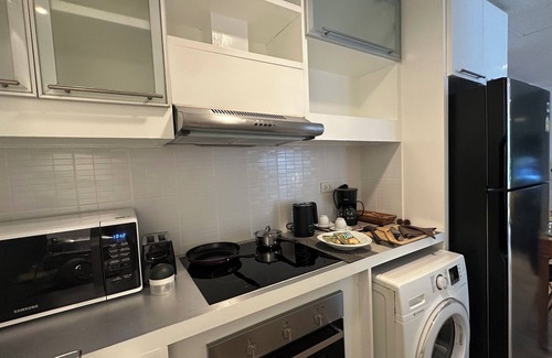 Make yourself at home in this 2-bedroom Krung Thep Maha Nakhon retreat. This marvelous apartment boasts 1 king bed, 1 full bed, and 2 futon, perfect for a comfortable stay. With 2 bathrooms equipped with a shower, bidet, and hair dryer, guests will feel right at home. Enjoy the convenience of AC, a washing machine, WiFi, and a hair dryer. Relax in the living room with a cozy sofa