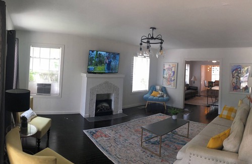 Inside, you'll find a seamless blend of timeless charm and modern convenience. Indulge in the luxury of flat-screen televisions and cozy up by the inviting gas log fireplace. This tranquil neighborhood, nestled in the heart of the University Park, will make you feel instantly at home.