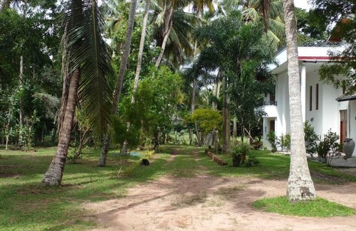 You won’t want to leave this charming, unique place. Step inside and unwind in the tranquil ambiance, perfect for relaxing before your next adventure. This delightful retreat is ideal for rejuvenation, whether you're resting before a flight or planning your journey. Nestled in a quiet neighborhood, this two-story house features a nearly one-acre garden adjoining picturesque rice fields. It offers two air-conditioned rooms with hot water for rent, each rented separately. Guests have exclusive use of the property, sharing common areas such as the rooftop terrace, kitchen, living room, and dining areas. The spacious garden and free parking are also available. The property is conveniently located just 10 minutes by car or tuk-tuk from the airport and the bustling town of Minuwangoda, which offers a variety of local shops, supermarkets, and international dining options like KFC, Domino's, and Pizza Hut. Minuwangoda town is only 1 km away, making it a pleasant walk.