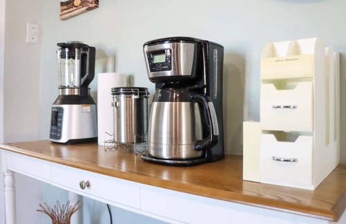 Kitchen: The fully equipped kitchen has everything you need to prepare meals, including a stove, microwave, coffee maker, and refrigerator. Dine at the cozy dining table or enjoy meals al fresco on the private patio.
