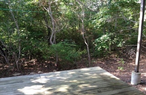 Welcome to our getaway. The Up-Island Treehouse offers an open, light-filled and breezy spot on the western tip of Martha's Vineyard. Here you can relax and unwind in comfort and take your time to enjoy waterviews, birdsong and the pleasure of lazing a day away in a hammock. With decks on three levels, the house affords our guests time apart and time together; time in the sun and time in the shade. Our treehouse, as its name implies, is hidden in the trees and situated on 2 acres with old stone walls and a stream on the property. Guests enjoy lunches and dinners on the main deck,; sunsets on the roofdeck; an open and inviting master bedroom with full ensuite bath and easy proximity to Aquinnah's beaches. The house has 2 bedrooms and 1 1/2 baths. The master loft boasts a Schifman queen and quality linens and the first level boasts a well-placed open air outdoor shower that our guests describe as special. The house is biking distance to all Gay Head beaches and includes permission to access Philbin Beach passes. Wifi is included.
