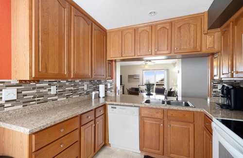 Enjoy free WiFi, streaming live TV with Smart TV with one in each room, and complimentary coffee. The kitchen is fully equipped with appliances including a refrigerator, stove, and dishwasher, as well as glassware, mugs, dishes, and utensils.