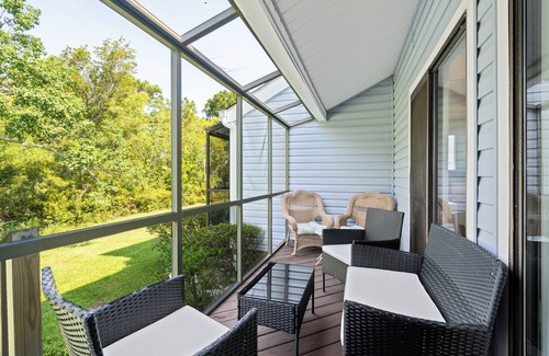 Fully Renovated Coastal Modern 2B, 2 1/2 bath END UNIT townhouse with peaceful SCREEN PORCH in heart of OBA-access to everything! Walking distance to Walmart Marketplace, Rouses, Cactus Cantina, Surf Style, Dollar General, WaffleHouse and the new CoastAL waterfront restaurant. 5 min walk to dedicated beach access. Soaring ceilings in GreatRoom gives space and natural light, Modern kitchen with quartz counters and stainless appliances. Ample 4 seating dining room with breakfast bar that seats additional 4. Primary Bedroom/Bath has oversized vanity for added space and walk in closet. Both bedrooms have private en-suite UPDATED baths and 1/2 bath is downstairs for convenience. Living Room equipped with king size sleeper sofa AND single bed perfectly tucked under open staircase. Pack n Play crib in closet of main bedroom as needed. Plenty of room for everyone! This Townhome is truly home away from home.