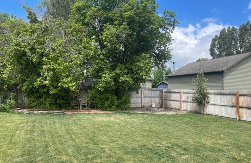 The backyard is accessible from the main living room through a sliding glass door. It's spacious and has plenty of room for yard games or just enjoying the majestic mountain views. There is an outdoor dining set and a propane BBQ grill. Propane refills are available at the Hyrum Chevron station at 35 N 800 E. There is a wood firepit and we include a free bundle of firewood. The backyard includes a rustic cedar privacy fence. Please note there is no gate to keep children in the backyard. However, the street is pretty quiet and has very low traffic. Guests are welcome to eat the apples in the apple orchard on the east side of the house as well as the raspberries on the west side. The raspberries produce a lot of fruit in season which is typically from July to September.