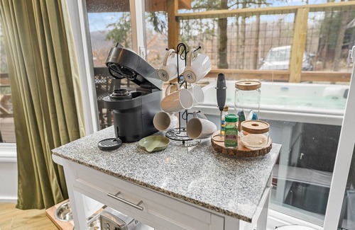 Outside, enjoy your private deck complete with a hot tub, gas grill, a fire table with cushioned seating, and a high-top outdoor dining table—perfect for enjoying the crisp mountain air.