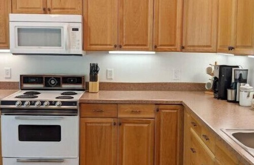 The first floor includes an open concept living and kitchen area perfect for enjoying time with friends. Kitchen is equipped with everything you need to prepare a meal for the family as well as a dishwasher so even the chef can relax! The first floor master bedroom has a comfortable king size bed, ensuite bathroom, and a designated work space with high speed wifi so you can be on lake time anytime.