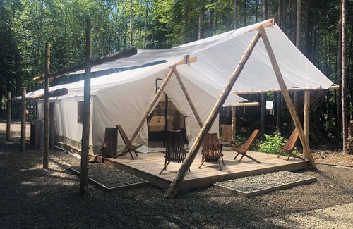 Well behaved pets are allowed in canvas glamping tents for additional fee.