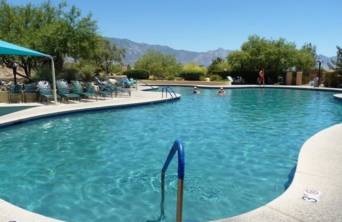 Yes, this Saddlebrooke house has a swimming pool. Check the Facility Overview section for details about the pool and other available facilities.