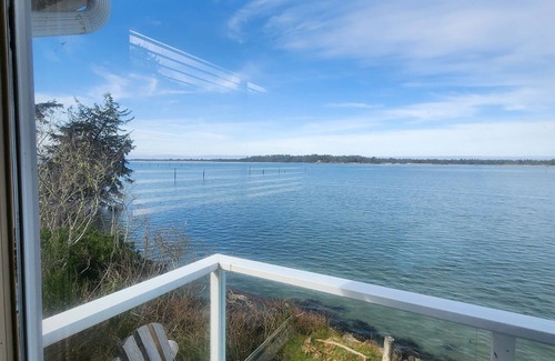 This is a split level condo with an upper and lower unit. The upper unit has a balcony,1 bedroom with a queen size bed and bathroom. Full kitchen, and Livingroom. You can open the French doors and watch the beautiful sunrises and sunsets on the balcony. You can watch the ships come into the bay. You can walk right down to the beach. Check in and key pick up is located at our main office located at Plainview motel and RV, 91904 cape Arago Hwy, Coos Bay OR 97420
