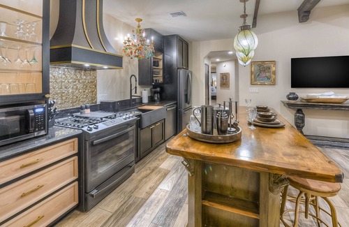 When it comes to in-home entertainment, this retreat doesn't miss! Three smart TVs are scattered around the home to provide guests with endless entertainment during their stay. The living room features a large 60-inch Samsung smart TV, while both bedrooms feature a 42-inch Samsung smart TV. The full kitchen includes cookbooks and spices to help you prepare wonderful meals.