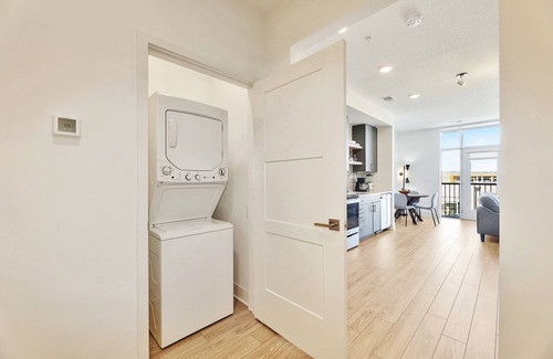 Discover luxury in this Upscale 1 Bedroom Apartment, perfect for business and leisure travelers. Stylish interiors, fully equipped kitchen, and exclusive access to an Infinity Pool with city views. Stay fit with our 24/7 Fitness Center! Enjoy our Luxer One Mail System for hassle-free packages. Cozy bedroom and modern bathroom. Prime location for easy city exploration. Book now for a seamless blend of comfort and sophistication!