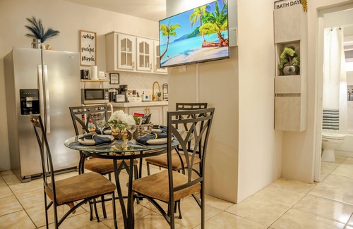 Cozy Coastal Condo is a modern 2-bedroom, 1-bathroom retreat on St. Mary’s coast, Jamaica. Perfect for families, friends, or couples, it features WiFi, laundry, TVs, a kitchen, AC, hot water, keyless entry, and a balcony with lush views. Located in a secure gated community, it’s 5 mins from Ian Fleming Airport (transfer extra), 8 mins from Pleasure Beach, and 10 mins from White River rafting. Bassinets are also available for families with babies. Your ideal Jamaican getaway awaits!